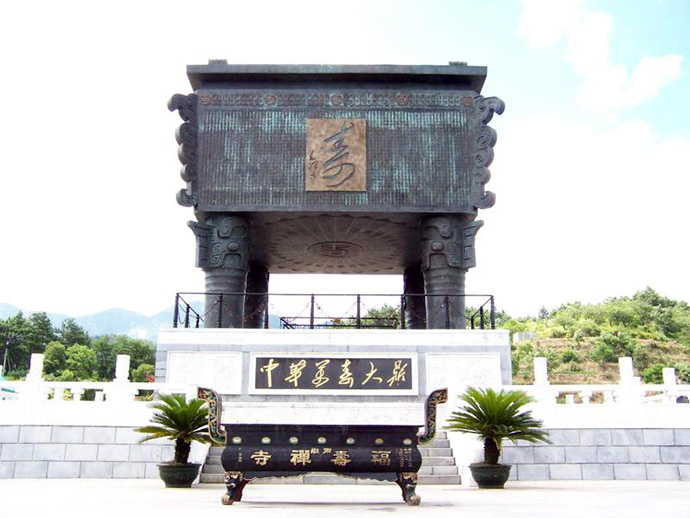 世界大型铜鼎——中华万寿大鼎坐落于南岳七十二峰之驾鹤峰上,中华万寿大鼎高9.9米,寓九九归一,中华统一;重56吨,寓56个民族和睦团结,共兴中华。