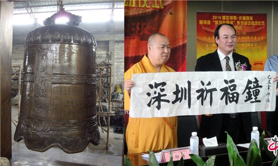 铜钟是广州岭南青铜雕塑公司的核心产品之一。由广州市岭南青铜公司为深圳弘法寺设计制作的铜钟铜质精良,致密坚固,铜钟声音浑厚延长,客户十分满意。