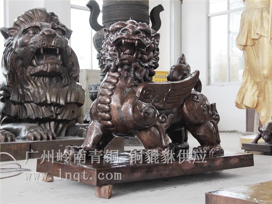 该款铜貔貅是浙江菲尔特工贸有限公司于2015年订购的一对大门铜貔貅,该款式铜貔貅由广州岭南青铜艺术有限公司设计、制作,由广州美术学院教授进行艺术造型的塑造,该款铜貔貅采用进口的智利电解铜铸造,采用整体一次性铸造,产品结构致密,采用6-8mm的铸造厚度,具备强大的抗打击变形能力,表面做成古铜色并进行硫化处理,增大了产品的抗腐蚀性能,大大延长产品保存时间。