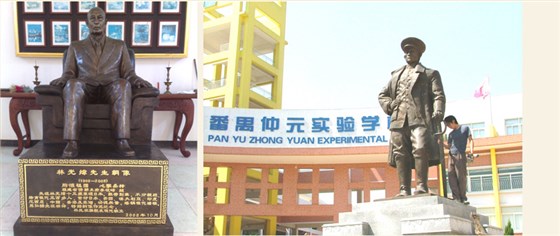 香港道德会会长霍宗杰真人全身铜像栩栩如生,生动传神,十分逼真,安装在新会人民医院。