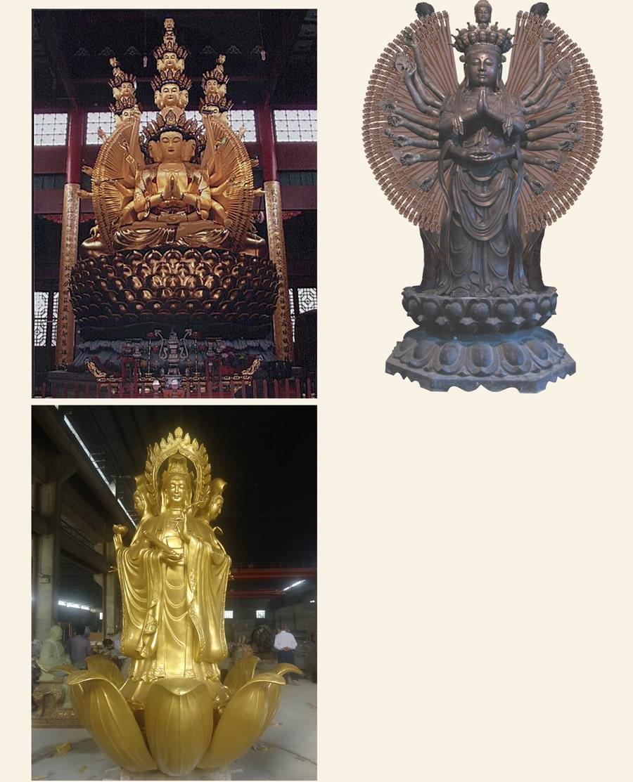 四面观音铜佛像由岭南青铜公司多位高水平的专业雕塑家进行四面观音铜佛像的设计、制模、铸造、表面处理和贴金,严格把控制作的每一个流程,铜佛像表面贴金手艺精致、造型华美、外观美仑美奂,顺利通过客户的验收,至今没有出现任何的质量问题。